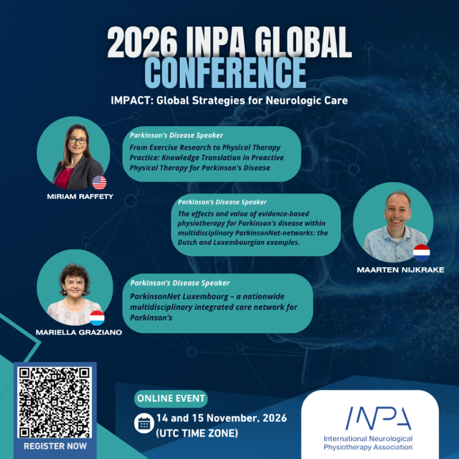 Dr. Maarten Nijkrake is a physiotherapist and clinical researcher working for the Center of Expertise for Parkinson & Movement Disorders of Radboud University Medical Center in Nijmegen, The Netherlands. His interest is on gait, balance, posture and respiratory dysfunction in movement disorders and particularly Parkinson’s disease. Maarten has (co-)authored over 25 publications and defended his thesis about the efficacy of Parkinson physiotherapy networks (so called ParkinsonNet) in 2010. Currently, he still implements healthcare networks for ParkinsonNet International and participates in the INPA SIG for Movement Disorders.