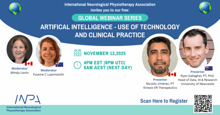 Join us for the November 2025 Webinar presented by Nicolas Jimenez, PT, Kinesix VR Therapeutics and Ryan Gallagher, PT, PhD, University of Newcastle and moderated by Mindy Levin and Yvonne Learmouth